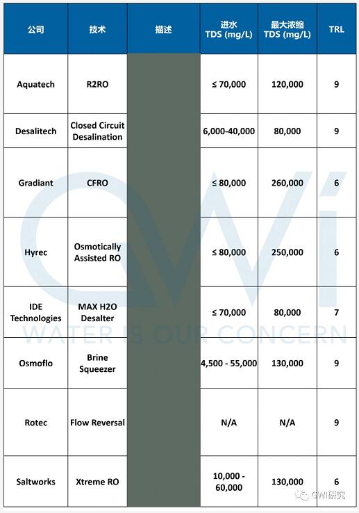 下表列出了目前市場上使用RO技術進行鹽水濃縮的一些領先公司及其產品: