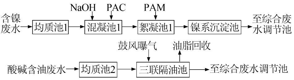 1 含鎳及酸堿含油廢水預處理流程