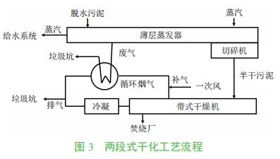 污泥處置的可行方式為土壤改良、衛生填埋和摻燒等。其中污泥與垃圾摻燒的方案由于初投資小、運行成本低、環保性好等原因,越來越受到社會的認可。對于此工藝來說,為了不影響垃圾的穩定焚燒,污泥在入爐前需進行干化處理。